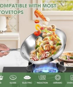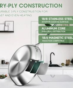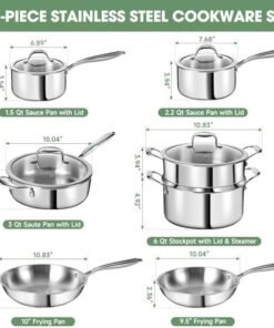 There is a slight learning curve to cooking with stainless steel…. it’s super simple, but the YouTube tips videos are essential to get you cooking like a pro with stainless steel. Cooking with it correctly, renders stainless steel NONSTICK.All the specs on this set make it a HUGE value compared to $500+ sets!It’s «TRI-PLY MULTICLAD», which means it’s 3 ply through the ENTIRE pot, not just in a welded on bottom base like cheapy knockoffs. The steel/aluminum quality is the same as Cuisinart’s.Stay cool handles are a really nice feature, however the listing doesn’t really indicate what kind of stainless steel the handles are made out of, but they are welded and riveted onto the pot, all the way through to the inside which is a good indication. It doesn’t come with an information leaflet with all the specs, and I wish it did.Love the inside measurement lines, and the tempered glass vented lids.If the specs are accurately advertised, this should be a very high quality unbranded professional chef series cookware set that will rival the big names.Excellent find! I’m very happy with my purchase. I will buy another set to gift.UPDATE: After cooking with this set for a month, I bought 3 more sets to gift. They are that good. I’m so serious.